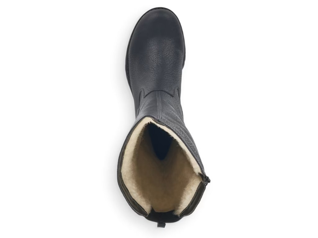 Tyto černé kozačky RIEKER se stanou vaším nejoblíbenějším společníkem do chladných dnů. Jsou navrženy tak, aby se dokonale přizpůsobily vašim nohám díky vsazeným gumičkám v zadní horní části.