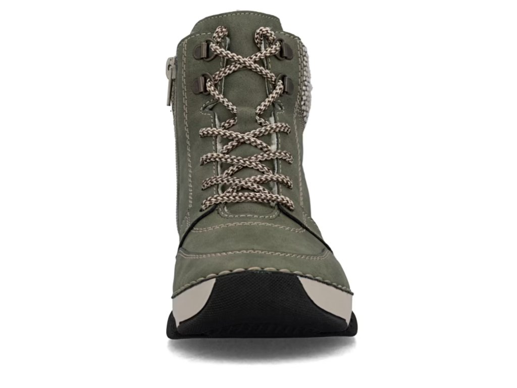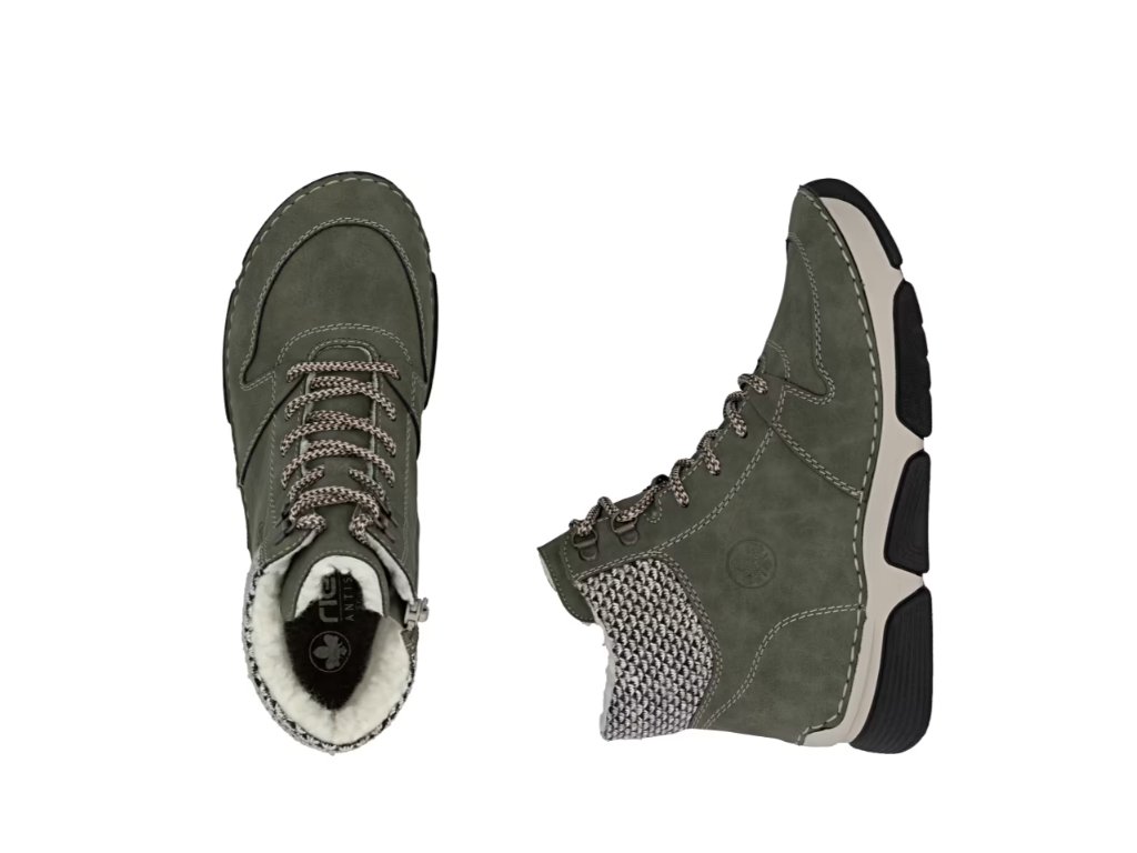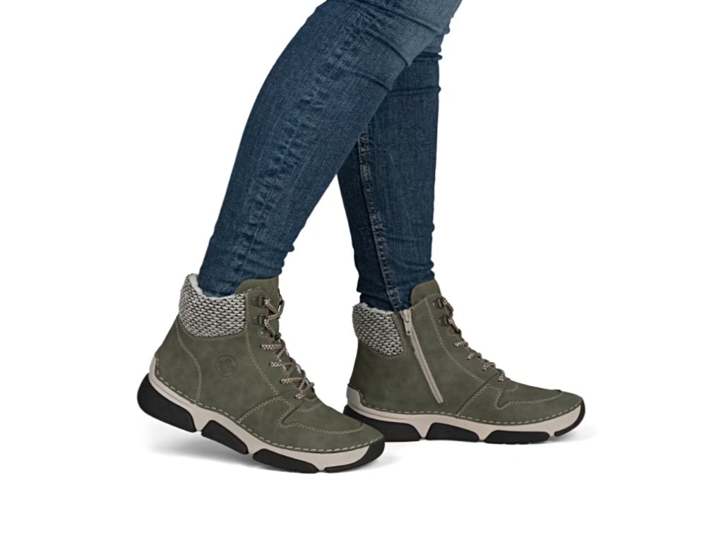 Tyto zimní boty RIEKER v zajímavé zelené barvě okamžitě upoutají pozornost svým moderním vzhledem a funkčními prvky, které oceníte během chladného období.