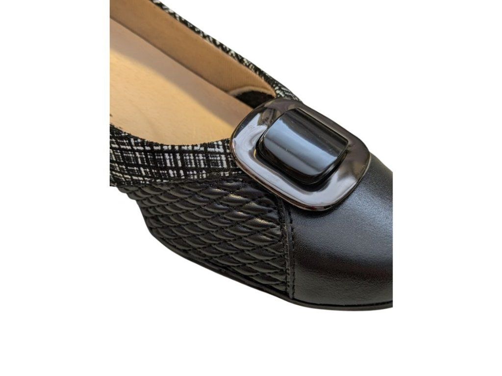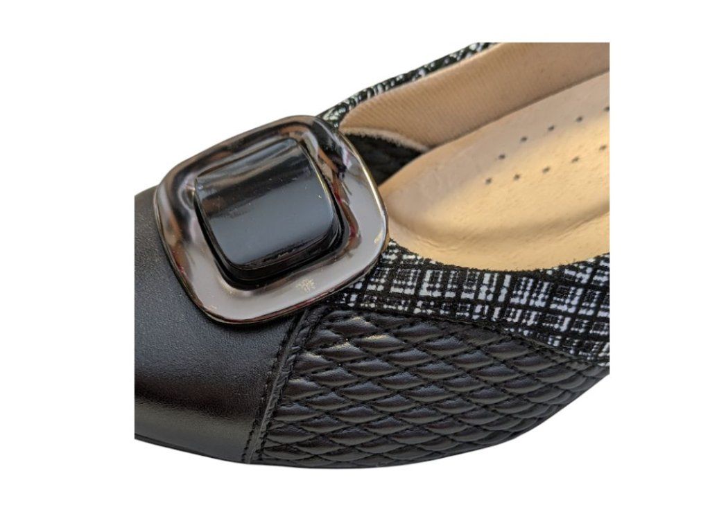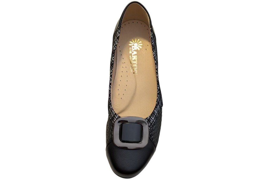 Lodičky české značky Barton jsou proslulé svým zaměřením na komfort a kvalitní materiály. Tento model je vyroben z prvotřídní hladké kůže a textilu. Pružné vsadky zaručují pohodlí i pro nohy, která trápí deformity nohou - hallux.