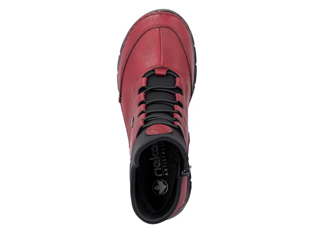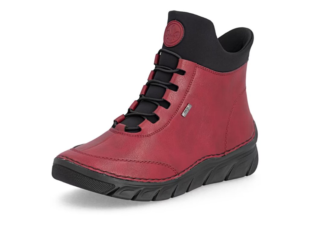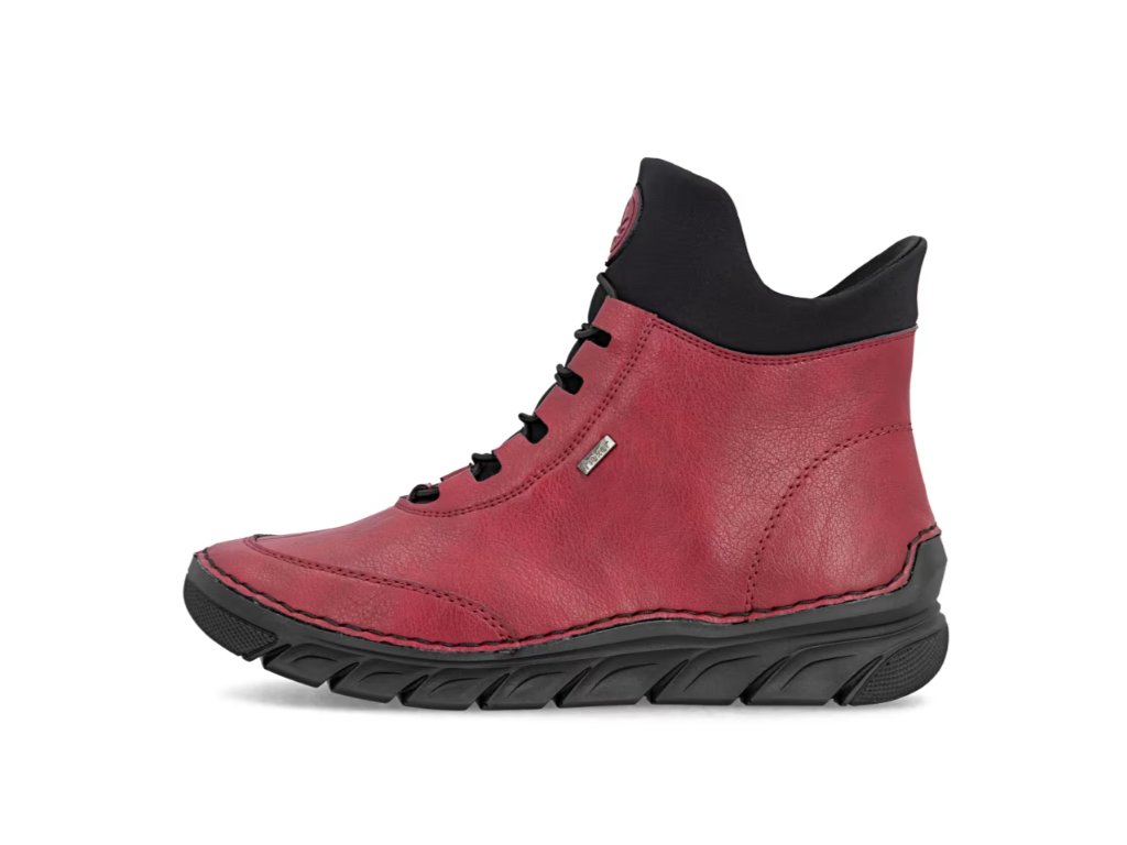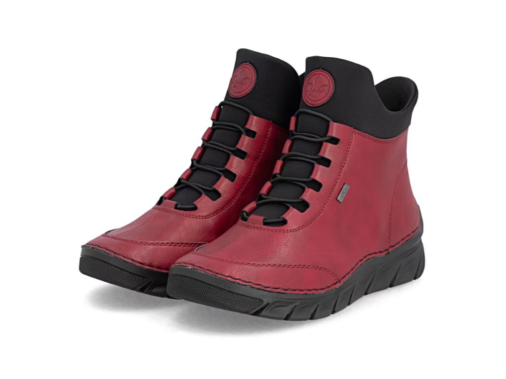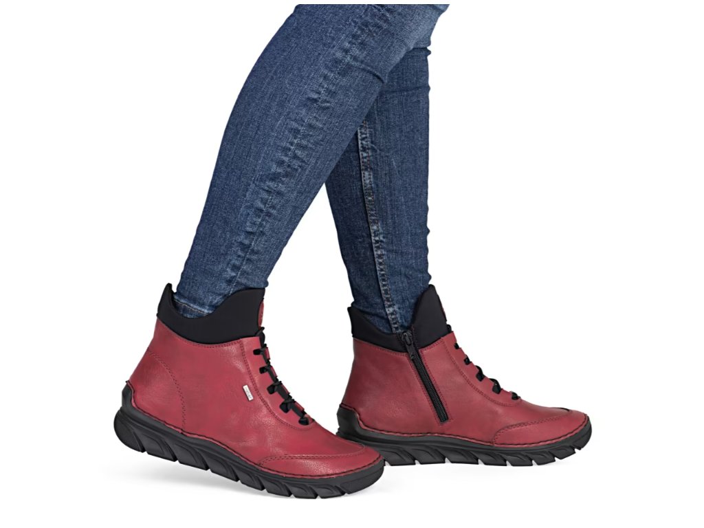 Tyto dámské kotníkové boty od značky Rieker jsou navrženy pro ženy, které hledají výrazný styl a maximální komfort. Trendy červená barva svršku okamžitě upoutá pozornost a vytváří stylový kontrast s černým textilním materiálem, který zajišťuje dokonalé přizpůsobení boty tvaru vaší nohy.