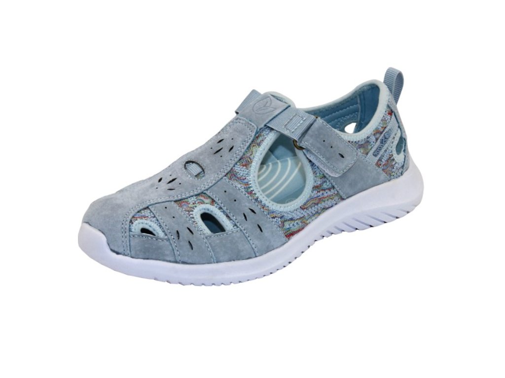 Velmi žádané dámské sandály Santé se zapínají na jeden suchý zip a jsou vyrobeny z kombinace kůže a textilu. Tyto sandály jsou extrémně lehké, mají ohebnou podešev a textilní tvarovanou vyjímatelnou stélku se srdíčkem. Navíc disponují inovativní prodyšnou antibakteriální stélkou AIR COOL z přírodních materiálů, která zajišťuje maximální komfort při chůzi, pohlcuje pachy a pot a obsahuje paměťovou pěnu pro ještě větší pohodlí.