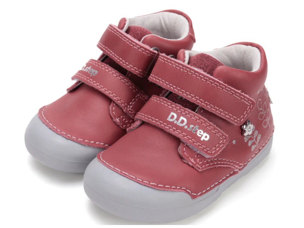 Dětské boty D.D.step jsou vyráběny z měkkých kůží. Botky mají vkládací koženou stélku , která absorbuje vlhkost a tlumí nárazy. Špička boty je kulatá a poskytuje tak dostatek místa pro prsty při došlapu. Podešve jsou ohebné a neklouzavé s nízkou hmotností. Použité materiály zaručují flexibilitu a pohodlí pro dětskou nožičku.