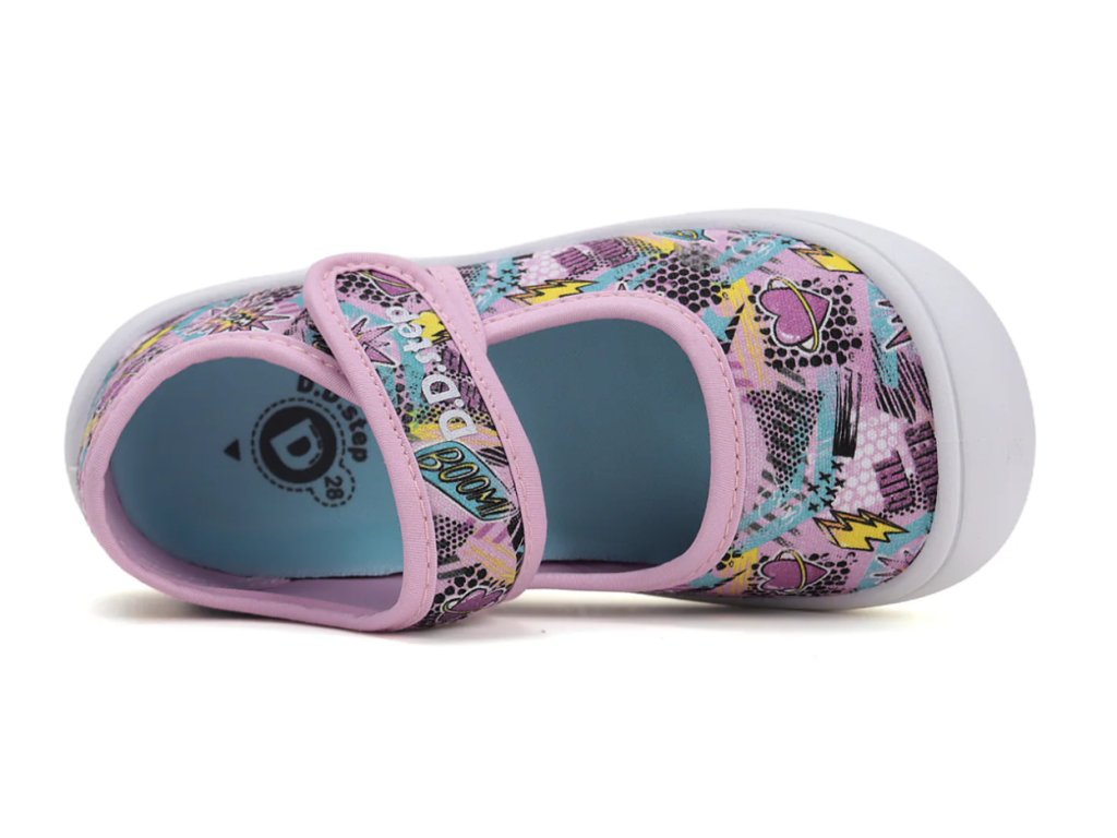 Dětské baleríny D.D.Step jsou vyrobeny z plátěného materiálu, který zajistí pohodlí a prodyšnost. Svršek i vnitřní část boty jsou z textilu, což přispívá k jejich lehkosti a flexibilitě. Tyto boty disponují vyjímatelnou stélkou, která poskytuje další komfort při nošení. Bota je bez opatku a má měkkou podešev. Uzavírání na suchý zip usnadňuje obouvání a zouvání.