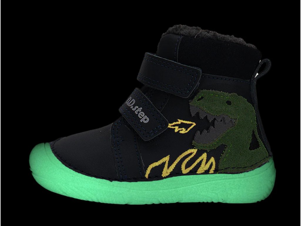 Celokožené zimní barefoot boty značky D.D.Step. Šití speciální technologií zaručují flexibilitu a komfort. Bota má prostornou barefoot špičku, poskytující dostatečný prostor, měkkou, neklouzavou a ohebnou podešev. Vyndavací zateplená stélka, v předu mírný okop chránící špičku. Nezpevněný opatek. Zateplené umělým kožíškem.
