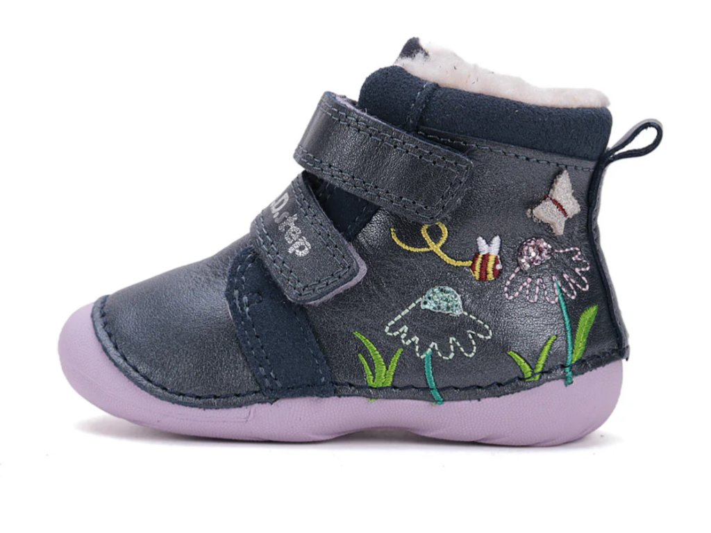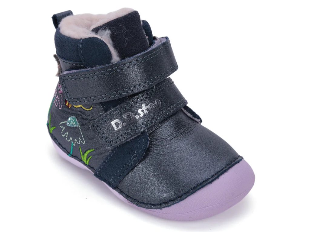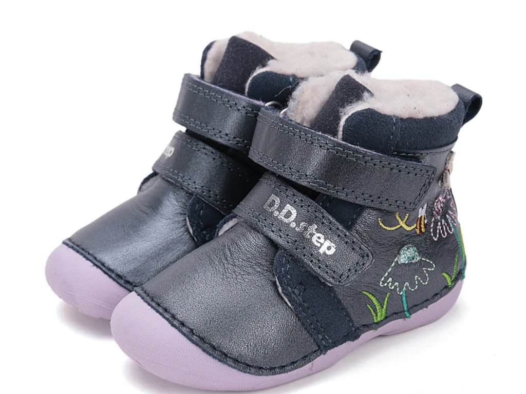 Celokožené boty značky D.D.Step. Šití speciální technologií zaručují flexibilitu a komfort. Bota má prostornou špičku, poskytující dostatečný prostor, měkkou, neklouzavou a ohebnou podešev. Vyndavací zateplená stélka, v předu mírný okop chránící špičku. Pevný opatek. Boty jsou kotníkového střihu, zateplené kožíškem.