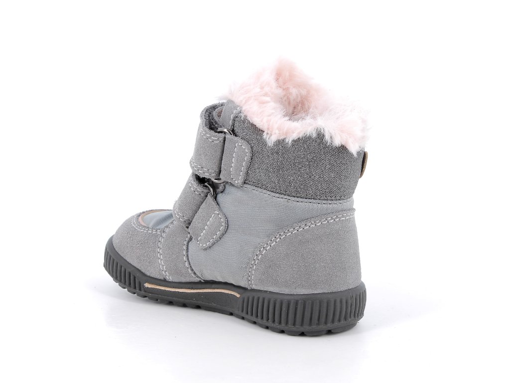 Svršek je vyroben z kombinace broušené kůže a textilu, což botám dodává styl a odolnost. Zateplení textilním kožíškem zajistí, že nohy neprochladnou, a vyjímatelná zateplená stélka.