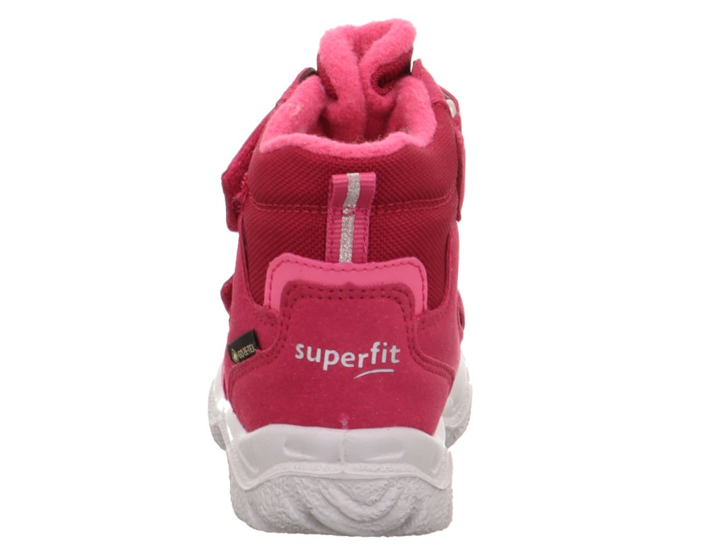 Dětské zimní boty Superfit s GORE-TEX membránou se zapínáním na dva suché zipy. Jsou velmi lehké, mají pevný opatek, ohebnou podešev a vyjímatelnou stélku.