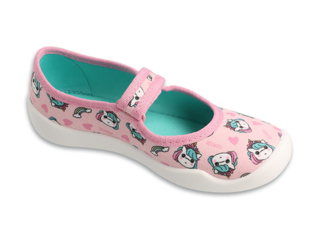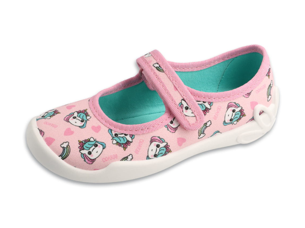 Dětské bačkory Befado s větracími průduchy se zapínáním na suchý zip. Odvětraná podrážka zajišťuje prodyšnost boty. Je lehká, pružná a protiskluzová. Bačkory jsou vyrobeny z kvalitních prodyšných materiálů. Mají pevný opatek a nízký klínovitý podpatek. Díky zapínání na suchý zip se bota přizpůsobí výšce nártu a usnadňuje obouvání.