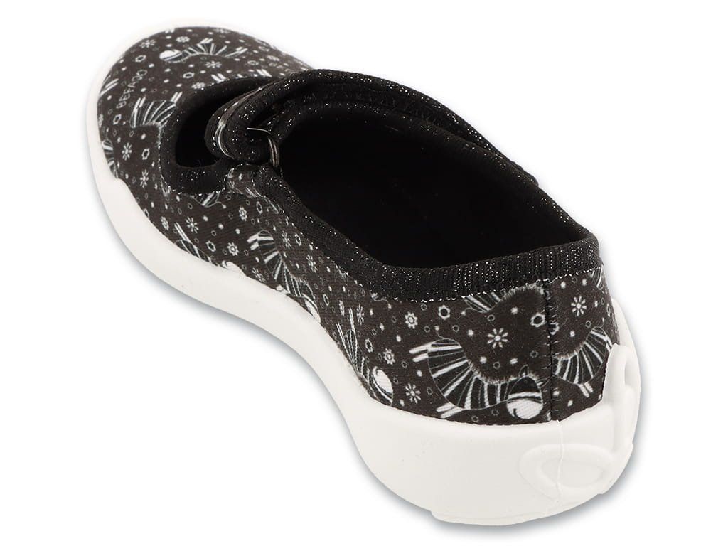 Dětské bačkory Befado s větracími průduchy se zapínáním na suchý zip. Odvětraná podrážka zajišťuje prodyšnost boty. Je lehká, pružná a protiskluzová. Bačkory jsou vyrobeny z kvalitních prodyšných materiálů. Mají pevný opatek a nízký klínovitý podpatek. Díky zapínání na suchý zip se bota přizpůsobí výšce nártu a usnadňuje obouvání.
