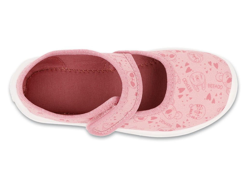 Extra pružné a lehké dětské bačkory Befado s větracími průduchy. Odvětraná podrážka zajišťuje prodyšnost boty. Je lehká, pružná a protiskluzová. Bačkory jsou vyrobeny z kvalitních prodyšných materiálů. Mají pevný opatek a nízký klínovitý podpatek. Bačkorky jsou na suchý zip, který usnadňuje obouvání.