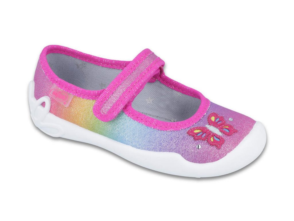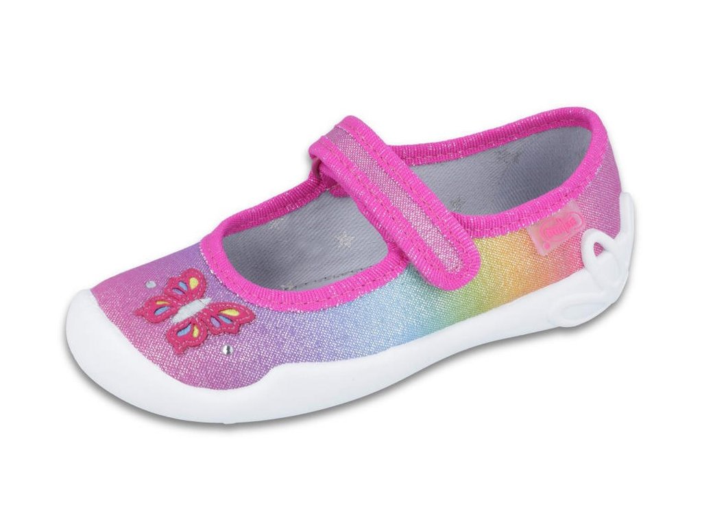 Dětské bačkory Befado s větracími průduchy se zapínáním na suchý zip. Odvětraná podrážka zajišťuje prodyšnost boty. Je lehká, pružná a protiskluzová. Bačkory jsou vyrobeny z kvalitních prodyšných materiálů. Mají pevný opatek a nízký klínovitý podpatek. Díky zapínání na suchý zip se bota přizpůsobí výšce nártu a usnadňuje obouvání.