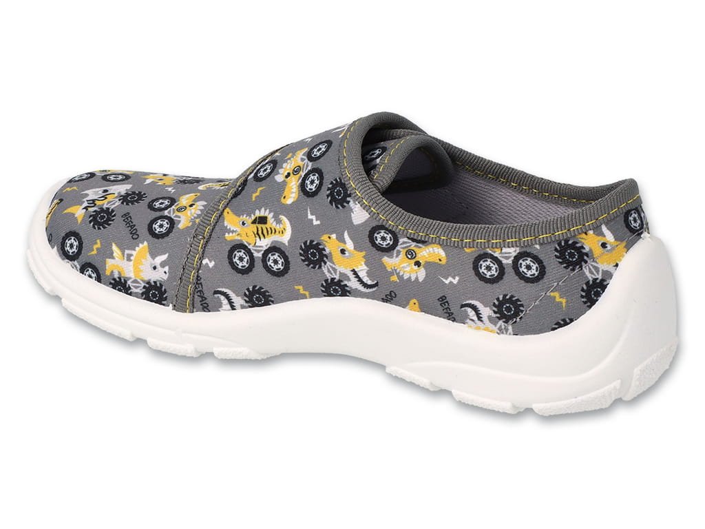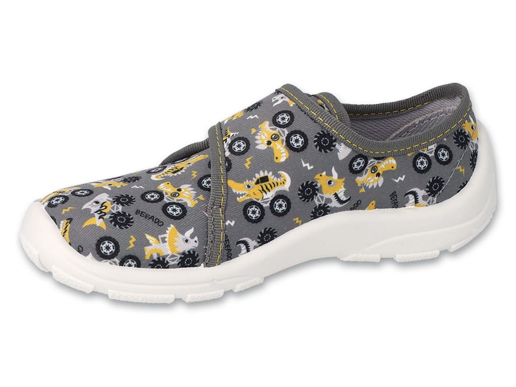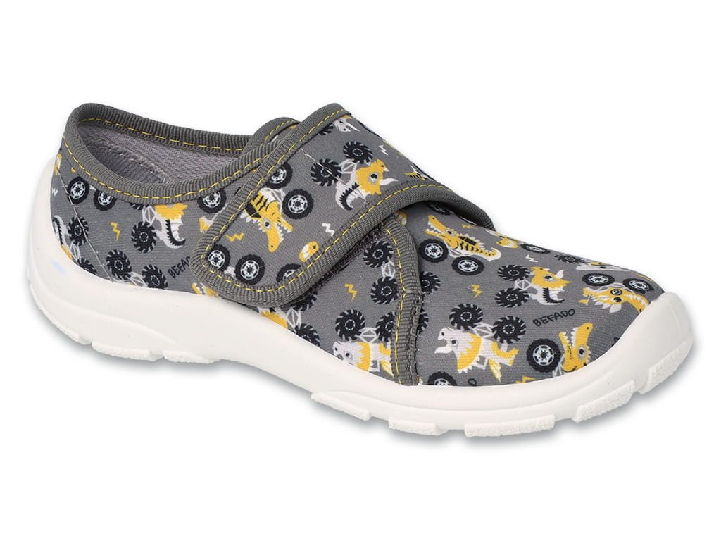 Dětské bačkory Befado s větracími průduchy se zapínáním na suchý zip. Odvětraná podrážka zajišťuje prodyšnost boty. Je lehká, pružná a protiskluzová. Bačkory jsou vyrobeny z kvalitních prodyšných materiálů. Mají pevný opatek a nízký klínovitý podpatek. Díky zapínání na suchý zip se bota přizpůsobí výšce nártu a usnadňuje obouvání.