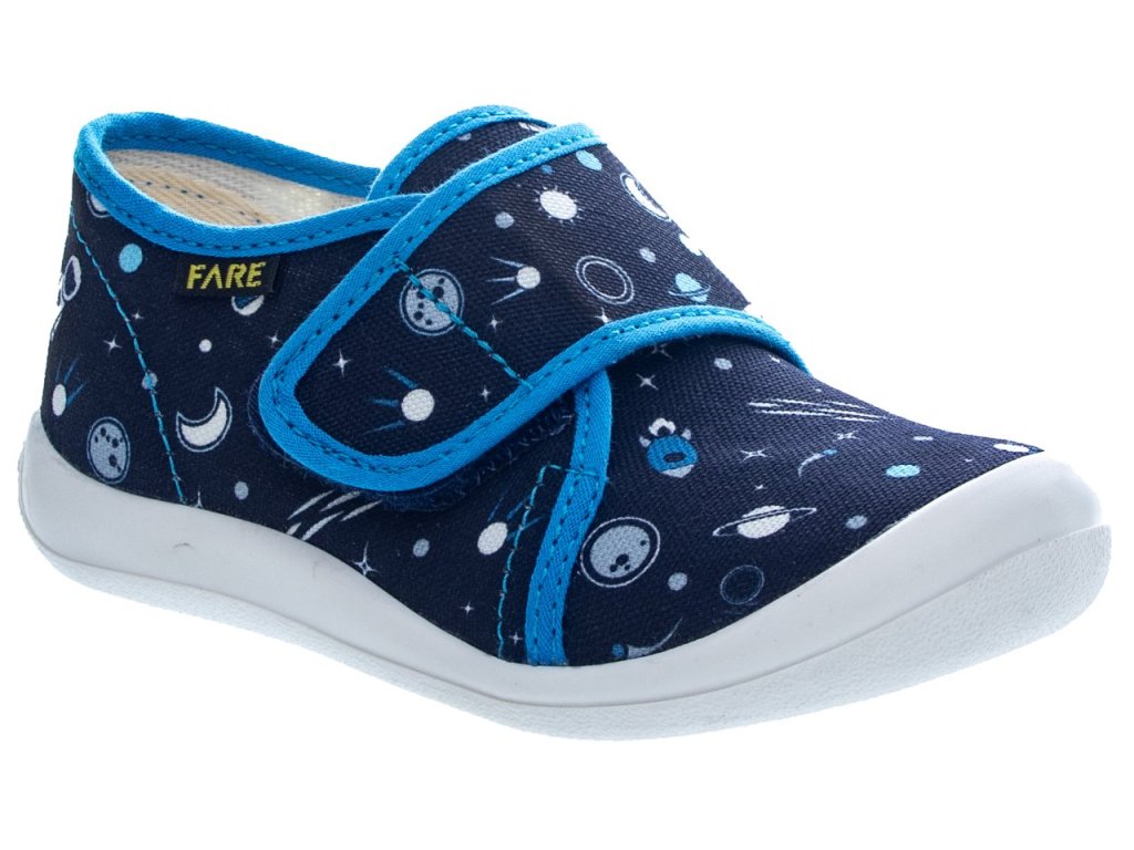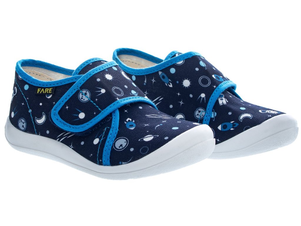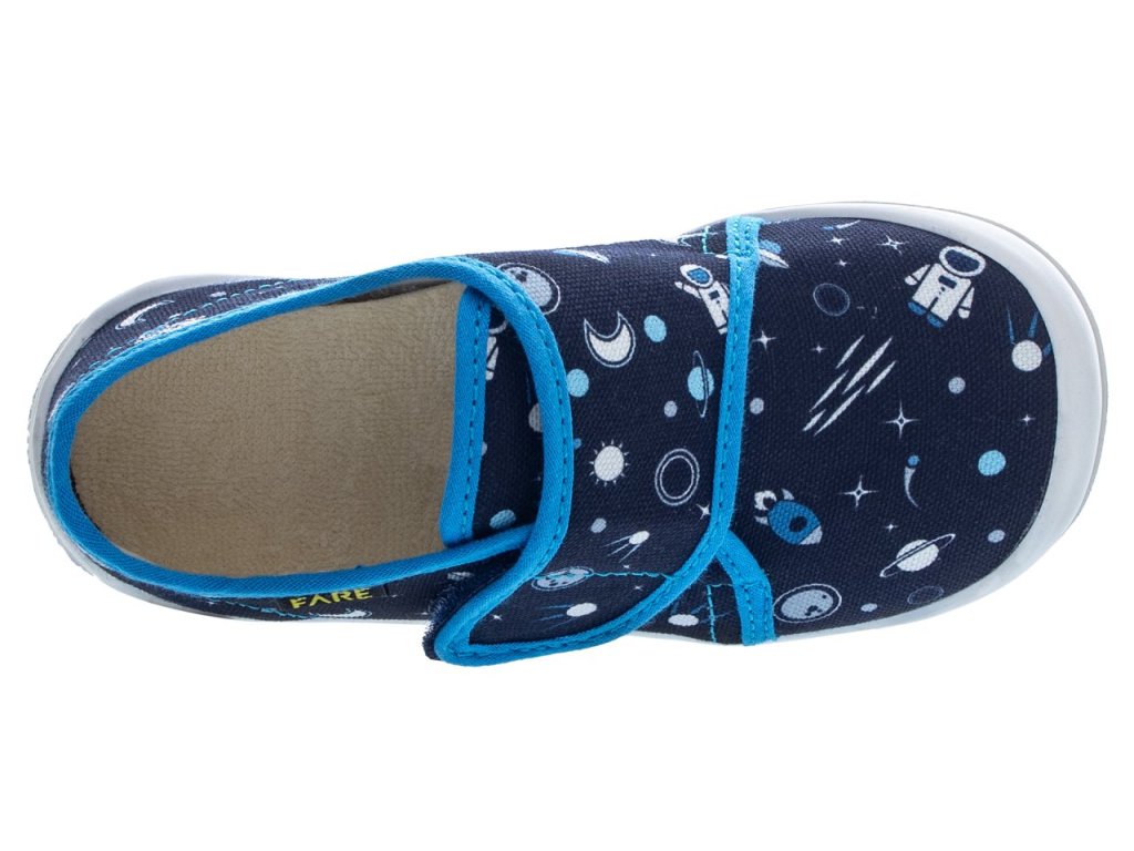 Dětské bačkory Fare jsou ideální volbou pro domácí i školní prostředí. Svršek z barevného pracího kordu a vnitřek z bavlněného kepru zajišťují pohodlí a prodyšnost během celodenního nošení. Odlehčená podešev z termoplastického elastomeru je neklouzavá a vhodná pro různé typy podlah, což přispívá k bezpečnosti dítěte. Prostorná prstová část umožňuje volný pohyb prstů, zatímco pevný opatek poskytuje správnou fixaci paty. Vyjímatelná stélka s tlumicí vrstvou zvyšuje komfort při chůzi. Zapínání na suchý zip usnadňuje obouvání a zouvání, což ocení jak děti, tak rodiče. Moderní design s ochranou špičky proti opotřebení zajišťuje dlouhou životnost obuvi.