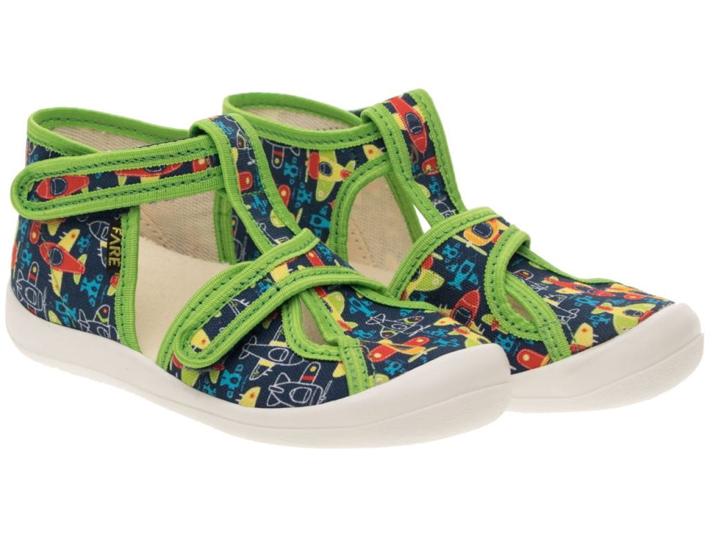 Dětské bačkory Fare jsou navrženy pro maximální pohodlí a zdravý vývoj dětských nohou. Svršek z prodyšného textilního materiálu zajišťuje optimální cirkulaci vzduchu, což je ideální pro celodenní nošení doma či ve školce. Díky zapínání na suchý zip lze obuv snadno a rychle upravit podle individuálních potřeb dítěte, což umožňuje perfektní přizpůsobení kolem kotníku a nártu. Pevný opatek poskytuje potřebnou oporu pro správnou fixaci nohy, zatímco lehká a neklouzavá podešev z termoplastického elastomeru zajišťuje bezpečný a stabilní krok na různých površích. Prostorná prstová část nabízí dostatek místa pro prsty, což je zvláště vhodné pro děti s širšími chodidly. Celkový design bačkor Fare kombinuje funkčnost s atraktivním vzhledem, což z nich činí ideální volbu pro každodenní použití.
