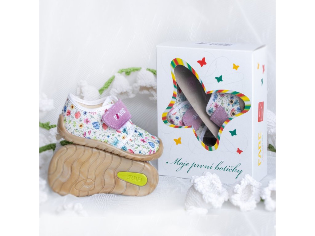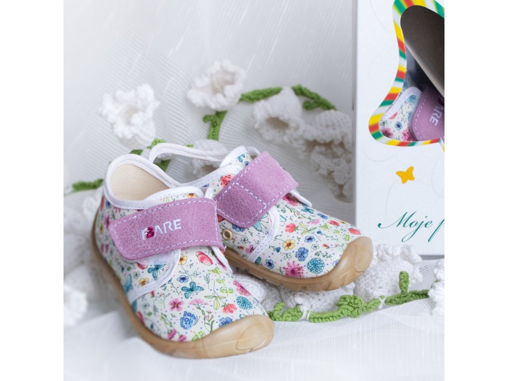 Dětské bačkory Fare Bare jsou ideální volbou pro domácí i školní prostředí. Svršek z textilního materiálu zajišťuje pohodlí a prodyšnost během celodenního nošení. Podešev z termokaučuku je velmi flexibilní, což podporuje přirozený pohyb dětské nohy. Prostorná prstová část poskytuje dostatek místa pro prsty, čímž neomezuje jejich vývoj. Obuv je vybavena dvěma vkládacími stélkami, které umožňují individuální přizpůsobení prostoru uvnitř boty. Zapínání na suchý zip usnadňuje obouvání a zouvání, což ocení jak děti, tak rodiče. Lehká a flexibilní konstrukce zajišťuje pohodlí při každodenním nošení.