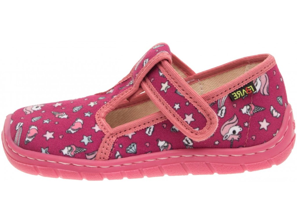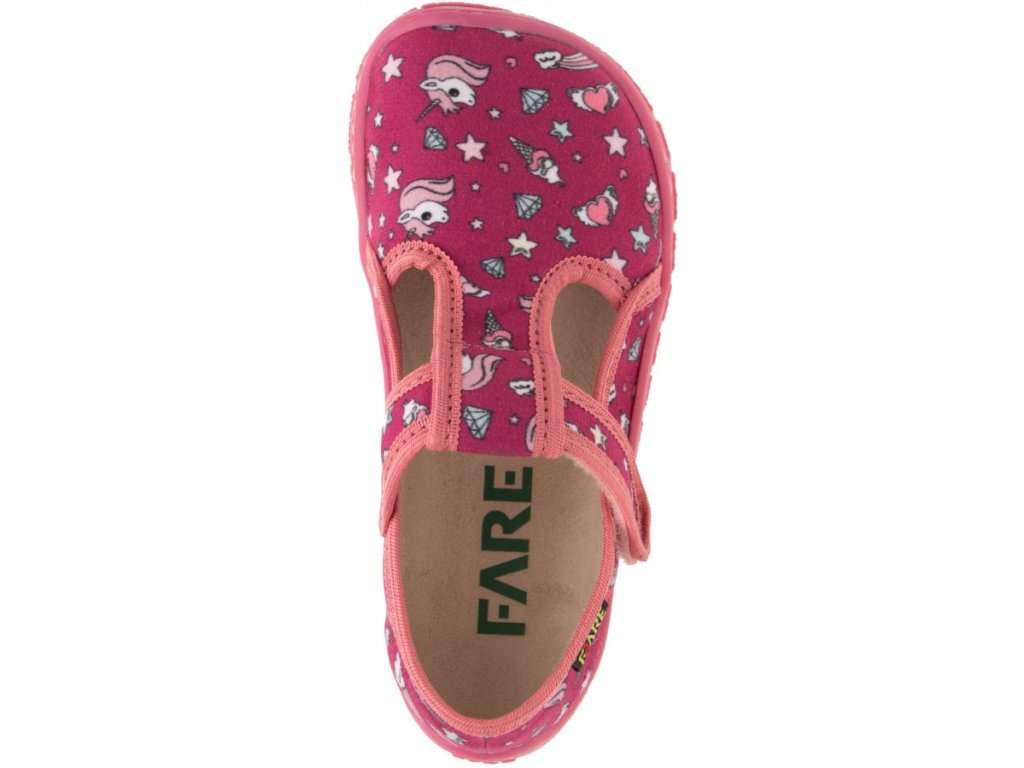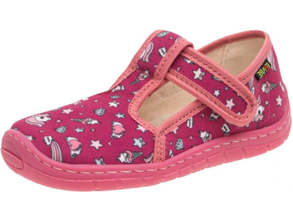 Dětské bačkory Fare Bare jsou ideální volbou pro domácí i školní prostředí. Svršek z textilního materiálu zajišťuje pohodlí a prodyšnost během celodenního nošení. Podešev z termokaučuku je velmi flexibilní, což podporuje přirozený pohyb dětské nohy. Prostorná prstová část poskytuje dostatek místa pro prsty, čímž neomezuje jejich vývoj. Obuv je vybavena dvěma vkládacími stélkami, které umožňují individuální přizpůsobení prostoru uvnitř boty. Zapínání na suchý zip usnadňuje obouvání a zouvání, což ocení jak děti, tak rodiče. Lehká a flexibilní konstrukce zajišťuje pohodlí při každodenním nošení.