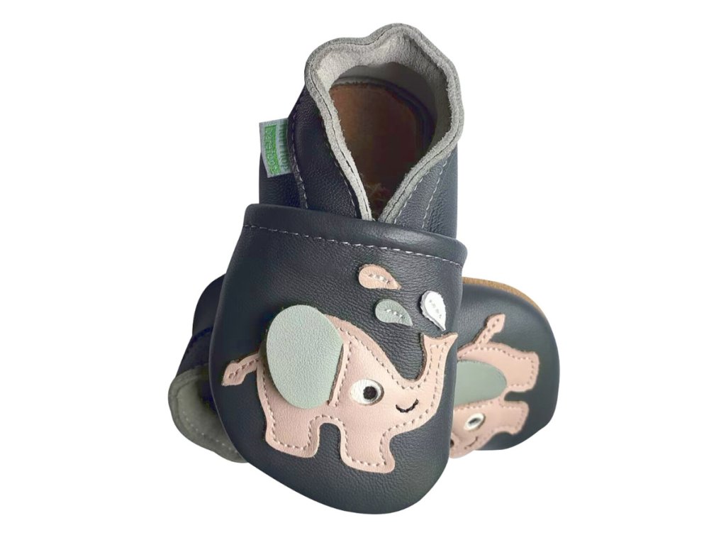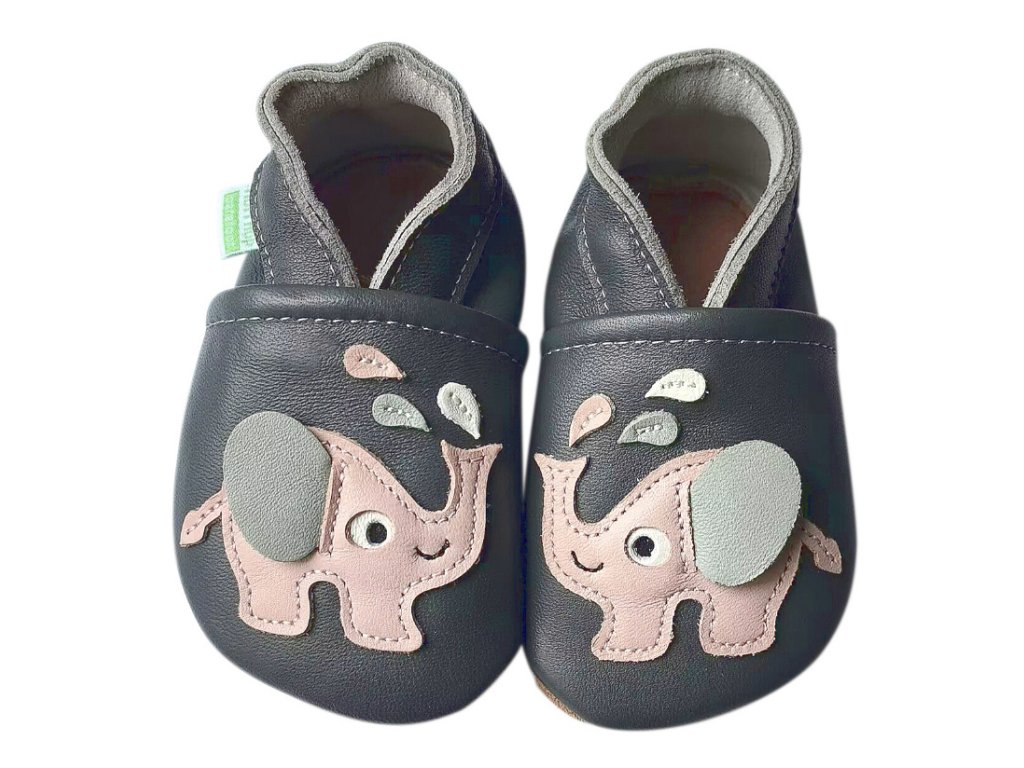Kožené capáčky Hopi Hop Barefoot Sloník šedo-růžový