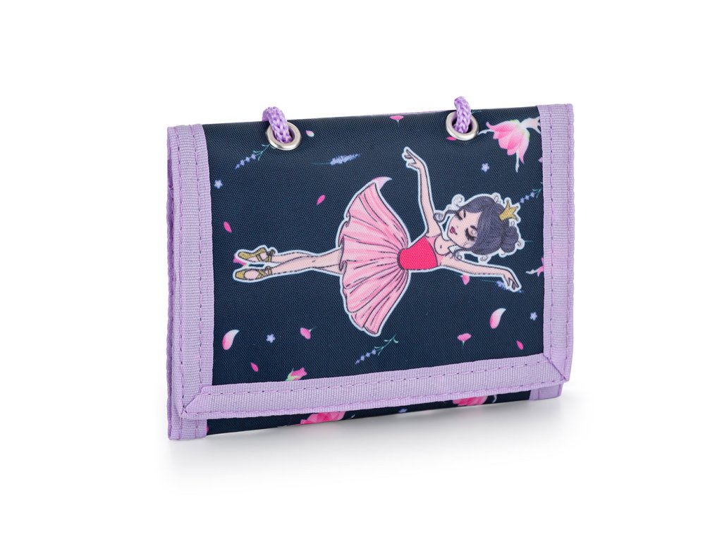 Dětská textilní peněženka na suchý zip, mnoho kapsiček, zipová kapsa na mince, kroužek na klíč nebo čip. Peněženka se dá nosit na krku.