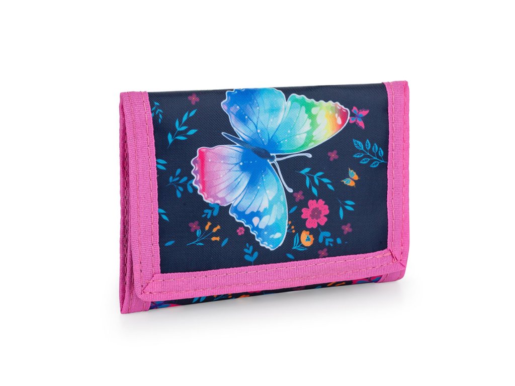 Dětská textilní peněženka na suchý zip, mnoho kapsiček, zipová kapsa na mince, kroužek na klíč nebo čip. Peněženka se dá nosit na krku.