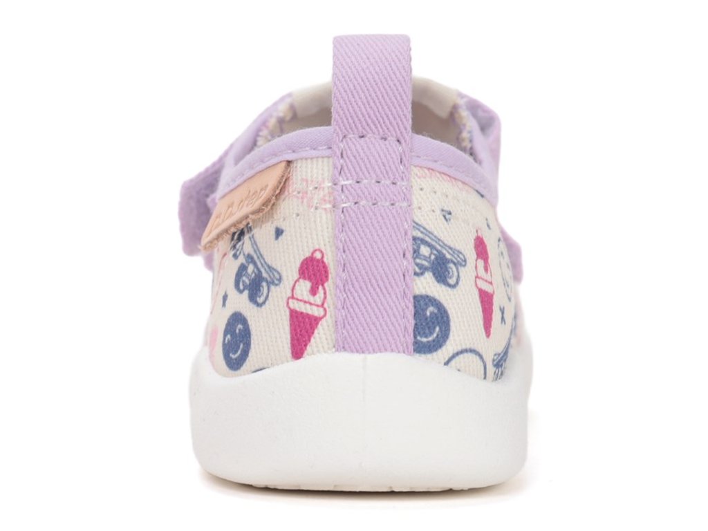Design s ohledem na dětskou nohu: Bota je konstruována bez pevného opatku, což v kombinaci s extra měkkou a ohebnou podešví umožňuje noze přirozeně pracovat a posilovat svaly klenby. Prostorná špička poskytuje dostatek místa pro prsty, aby se mohly volně rozvinout a nebyly nijak omezovány.