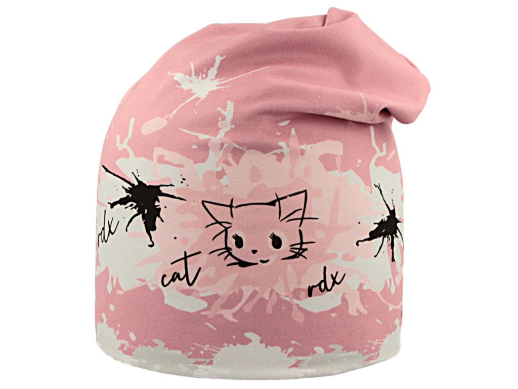 Dívčí dlouhá oboustranná čepice z funkčního materiálu. Čepice má originální potisk Kočka. Rychleschnoucí materiál.