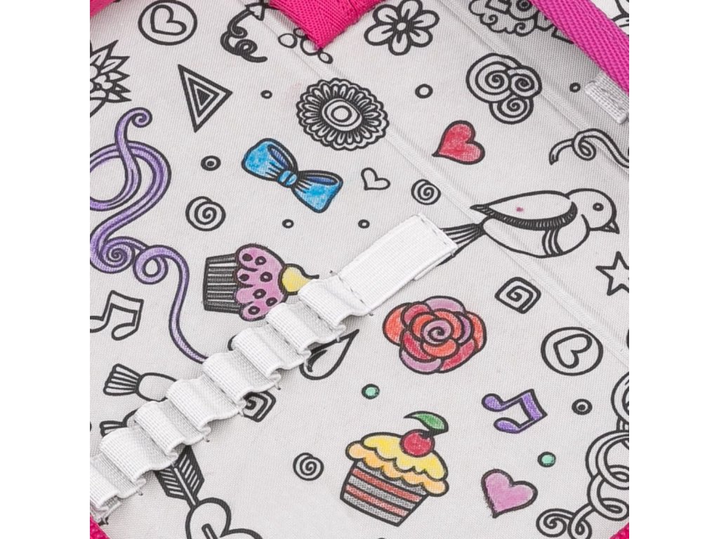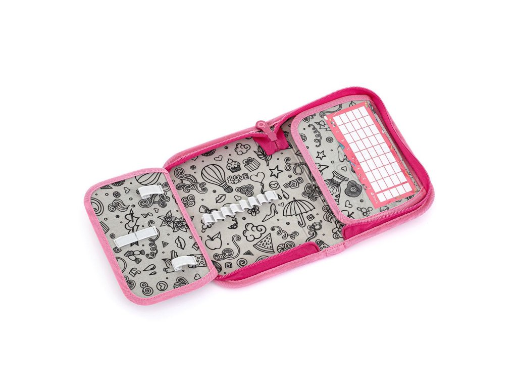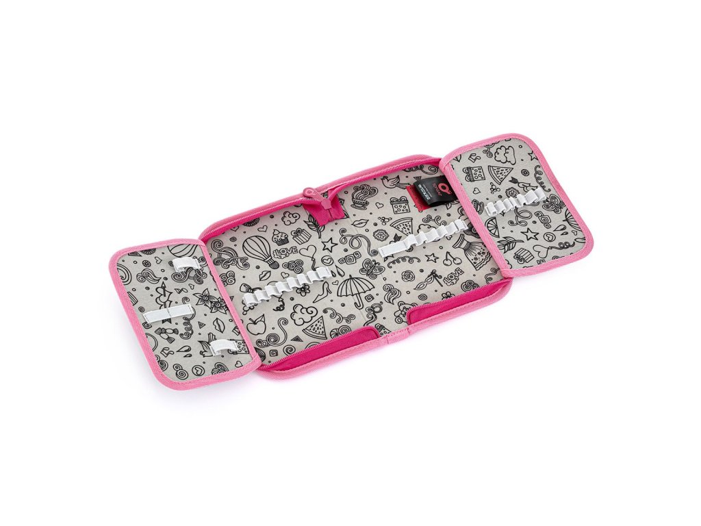 Kreslení povoleno! Vnitřní podšívka pouzdra je vyrobena z šedé látky s natištěnými obrázky. Ty si mohou děti vybarvit dle nálady a chuti. Naše malé doporučení - pro vybarvování budou lepší pastelky, fixy by se mohly rozpíjet.