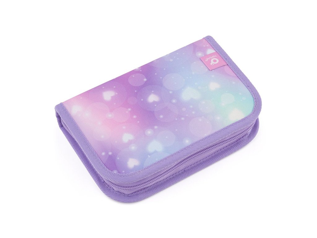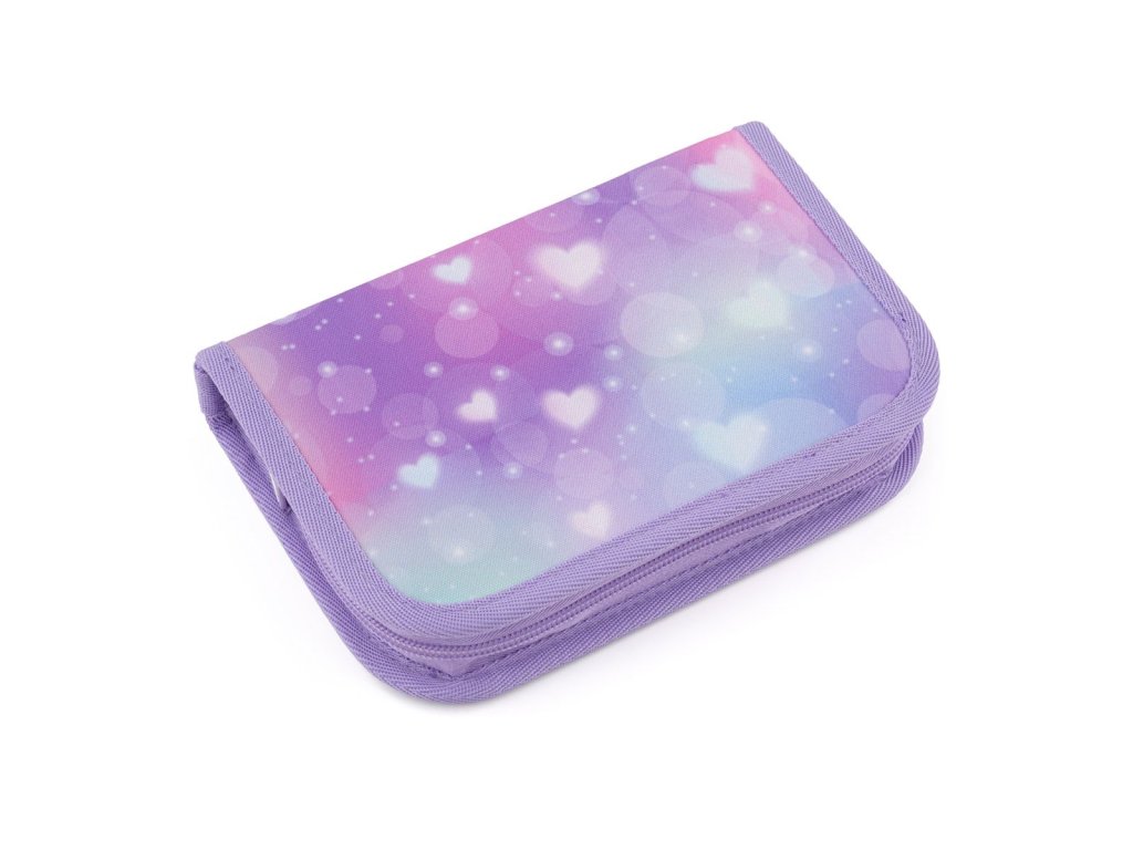 Jednopatrové školní pouzdro se dvěma klopami. Díky gumovým úchytům se do nich vejde celkem 21 pastelek, tužek a fixek. Tři širší úchyty poslouží na pravítko, kružítko či nůžky. Dva větší na gumu a ořezávátko.