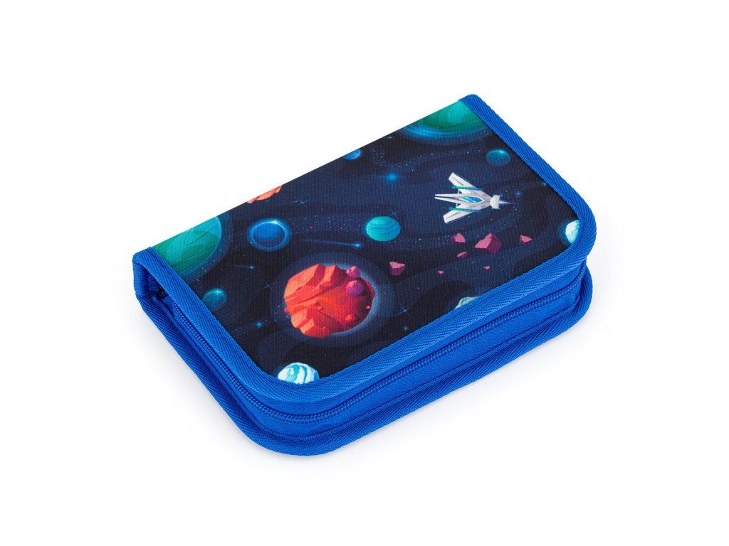 Jednopatrové školní pouzdro se dvěma klopami. Díky gumovým úchytům se do nich vejde celkem 21 pastelek, tužek a fixek. Tři širší úchyty poslouží na pravítko, kružítko či nůžky. Dva větší na gumu a ořezávátko.