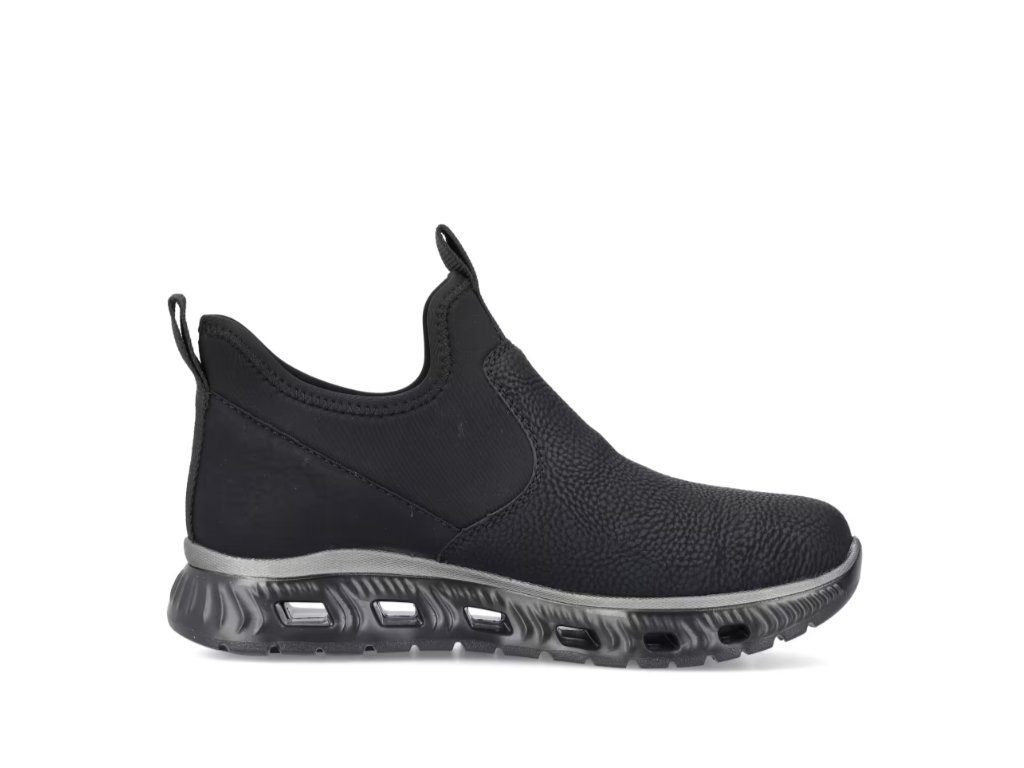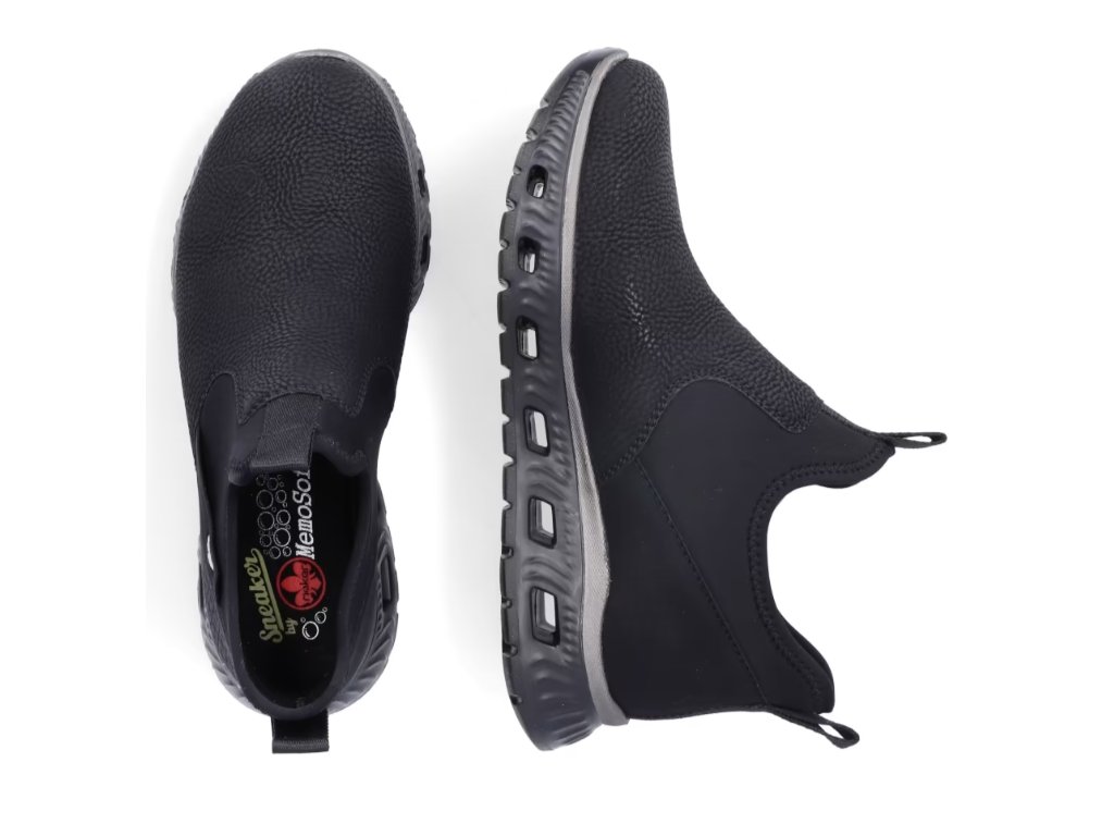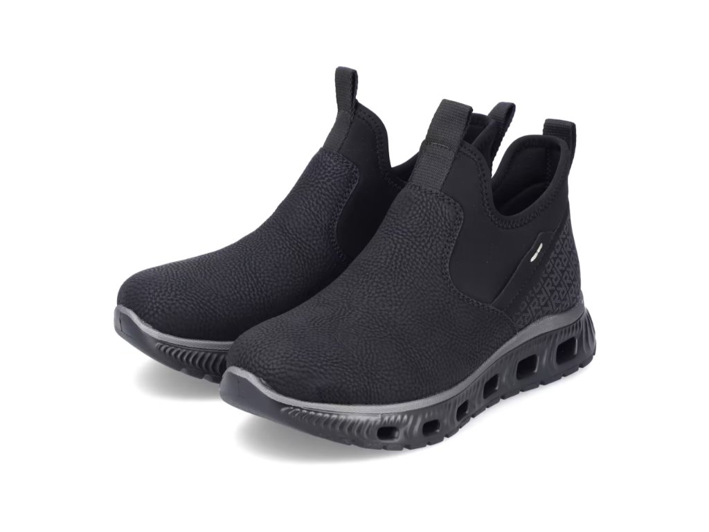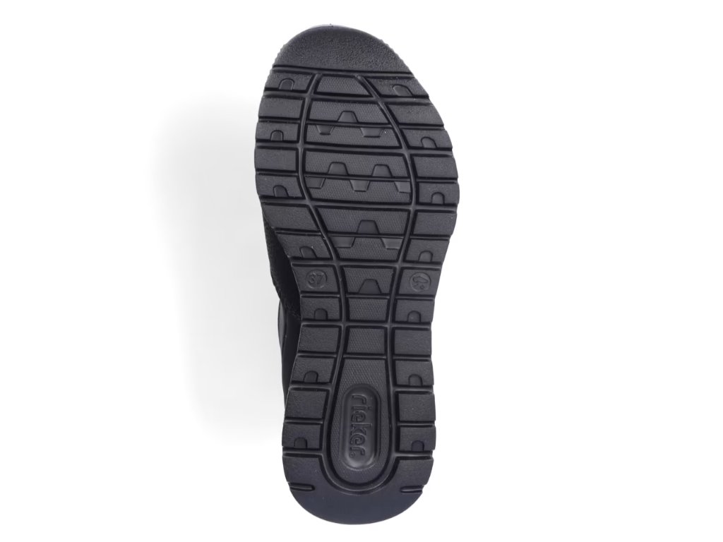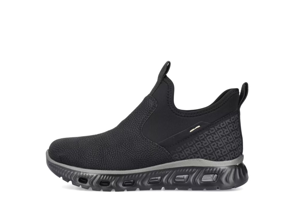 Tyto černé boty značky RIEKER dokonale vystihují moderní styl a praktičnost. Okamžitě zaujmou originálním potiskem v zadní části a designovou podešví, která zároveň tlumí nárazy při chůzi.