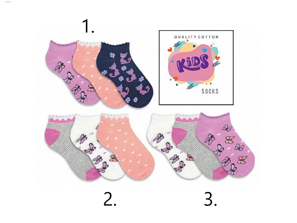 Dětské nízké ponožky "Kids"- německá výroba- 3pack- 75% bavlna, 22% polyester, 3% elastan- atraktivní vzory- 4 velikostní řady- 3 druhy balení (čísla u obrázků)