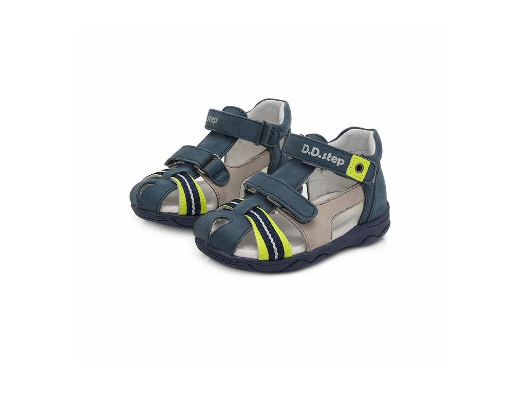 Chlapecké kožené sandálky se zapínáním na suchý zip s částečně uzavřenou špičkou. Sandály mají pevný opatek, koženou tvarovanou stélku a ohebnou lehkou podešev. Pevný opatek pomáhá stabilizovat patu a kotník, čímž předchází jejich nežádoucímu vychýlení a podporuje správnou chůzi.