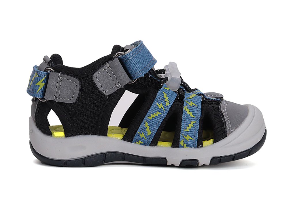 Uzavřená špička chrání prsty při hrách venku. Měkká textilní podšívka zajišťuje pohodlí i při delším nošení. Novinkou je pásek na suchý zip v patní části, který zlepšuje fixaci a přizpůsobení boty noze.