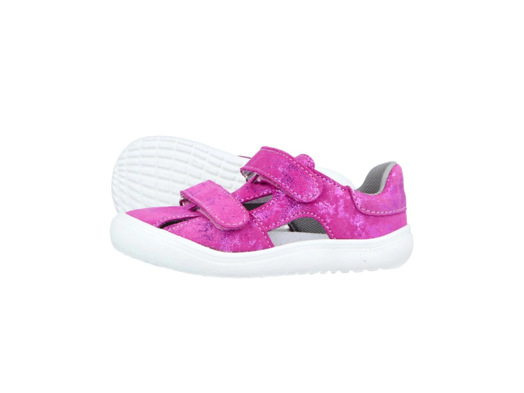 Barefoot kožené sandálky Jonap Daisy v růžové barvě jsou výjimečně lehké a navržené tak, aby maximálně podporovaly přirozený vývoj a pohyb dětského chodidla při chůzi i běhu. Svršek je vyroben z broušené kůže a podšívka z textilu. Vyjímatelná pěnová textilní stélka zvyšuje komfort. Široká špička poskytuje dostatek prostoru pro volný pohyb prstů a extrémně lehká, ohebná a široká podrážka v prstové části umocňuje barefoot pocit. Zapínání na suchý zip usnadňuje obouvání a praktický okop chrání botu před poškozením.