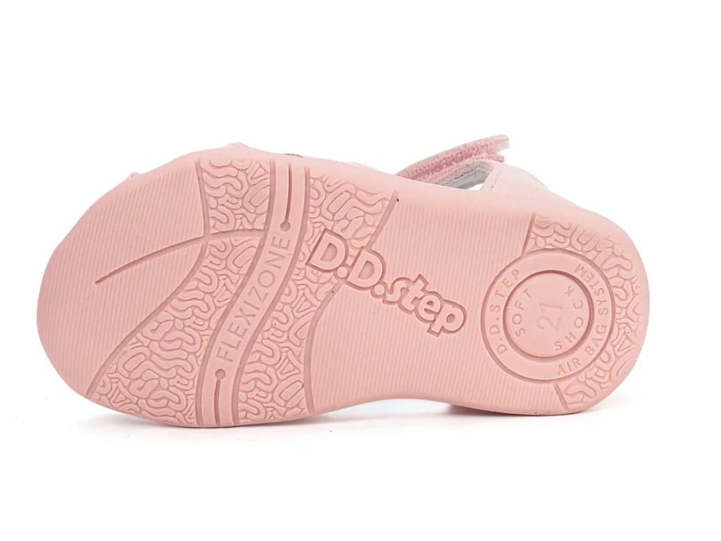 Dětské boty D.D.step jsou vyráběny z měkkých kůží. Podešve jsou ohebné a neklouzavé s nízkou hmotností. Použité materiály zaručují flexibilitu a pohodlí pro dětskou nožičku. Konstrukce obuvi je navržena tak, aby nebránila zdravému vývoji dětské nohy.
