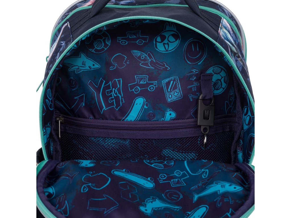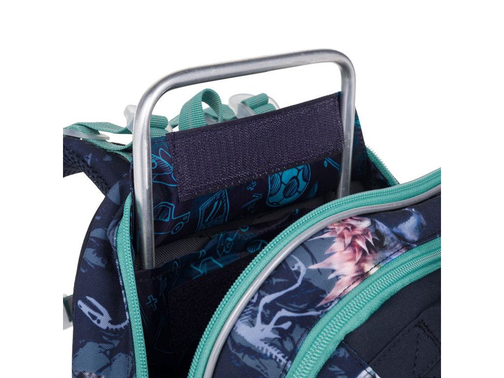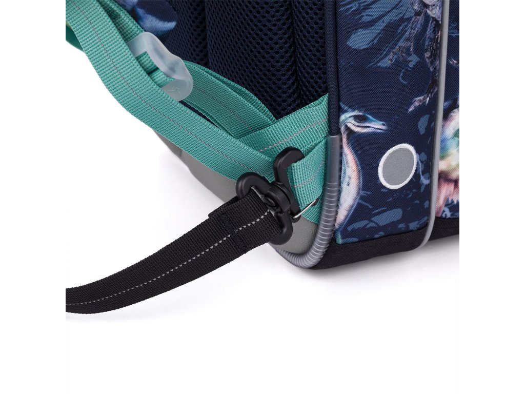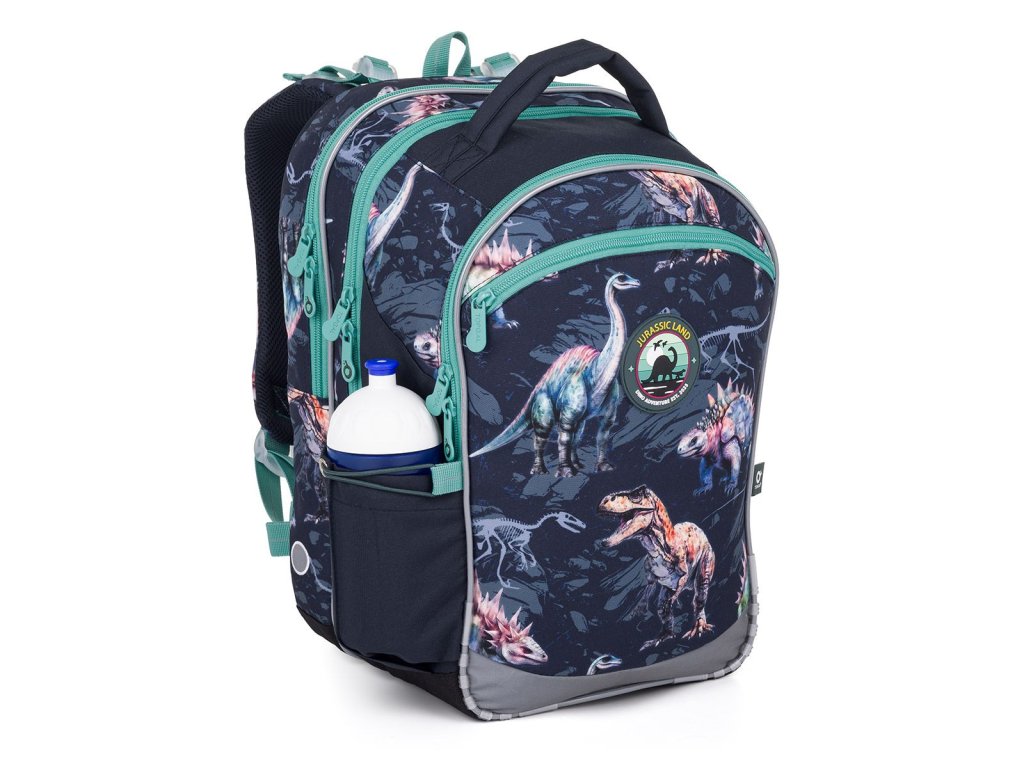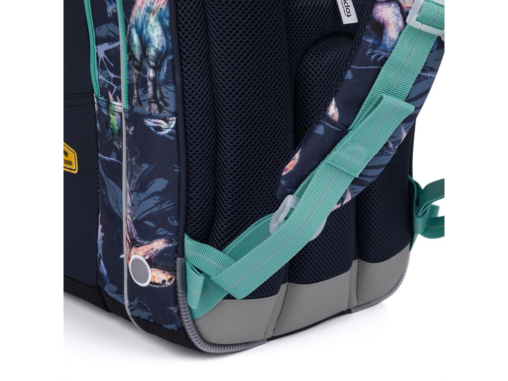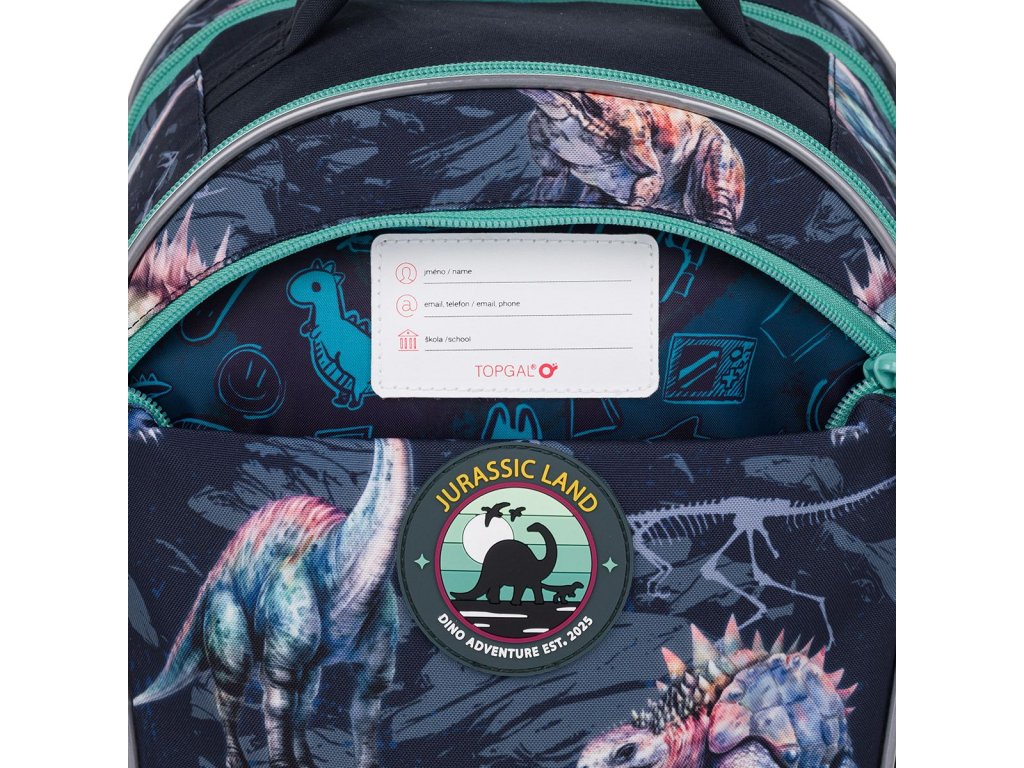 Tříkomorový tmavý batoh s dinosaury doporučujeme pro chlapce s výškou od 120 cm. Tentokrát nechybí ani stylová gumová nášivka. Praktickou tmavou barvou oživí zelené doplňky a naše ikonické zipy.