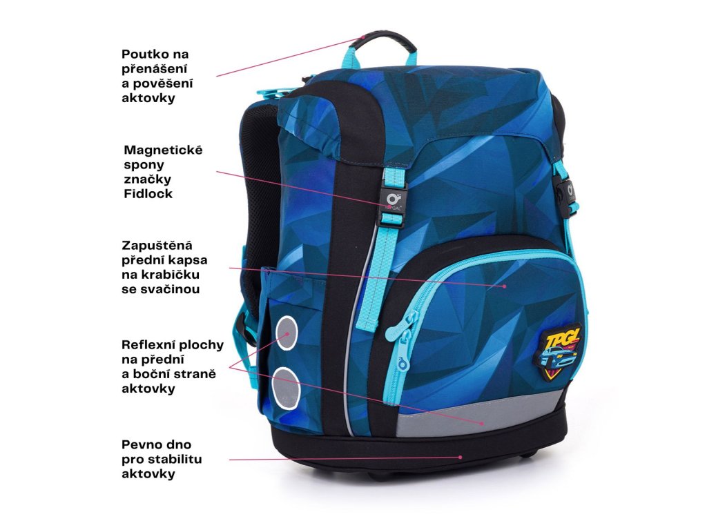 Jednokomorová aktovka KIRA je ultralehkou verzí klasické aktovky. Speciální zádový systém je anatomicky přizpůsoben dětským zádům. Snadná manipulace při otevírání a zavírání aktovky díky speciálně vyvinutým plastovým zámkům s magnetem.