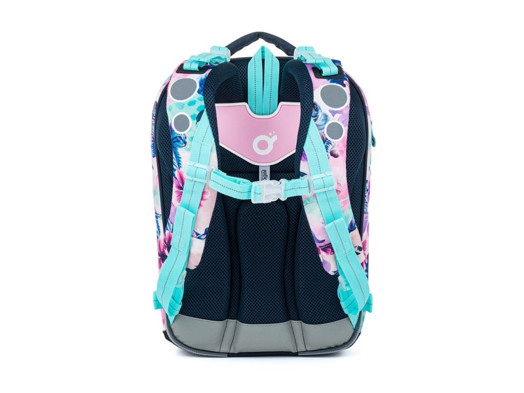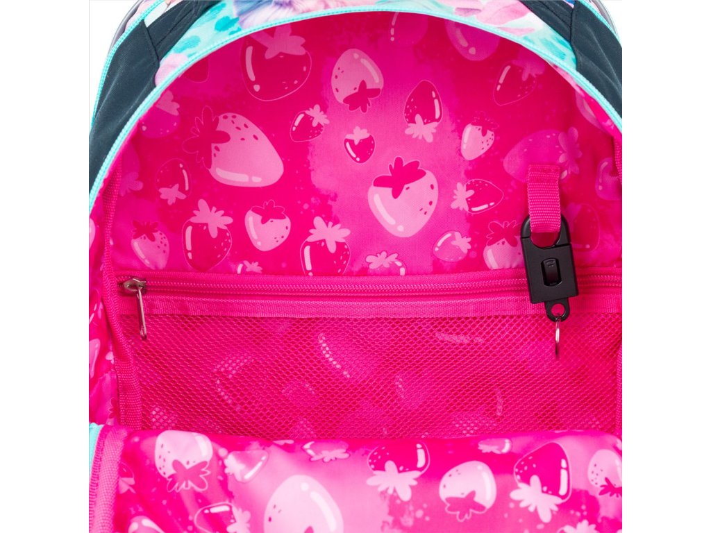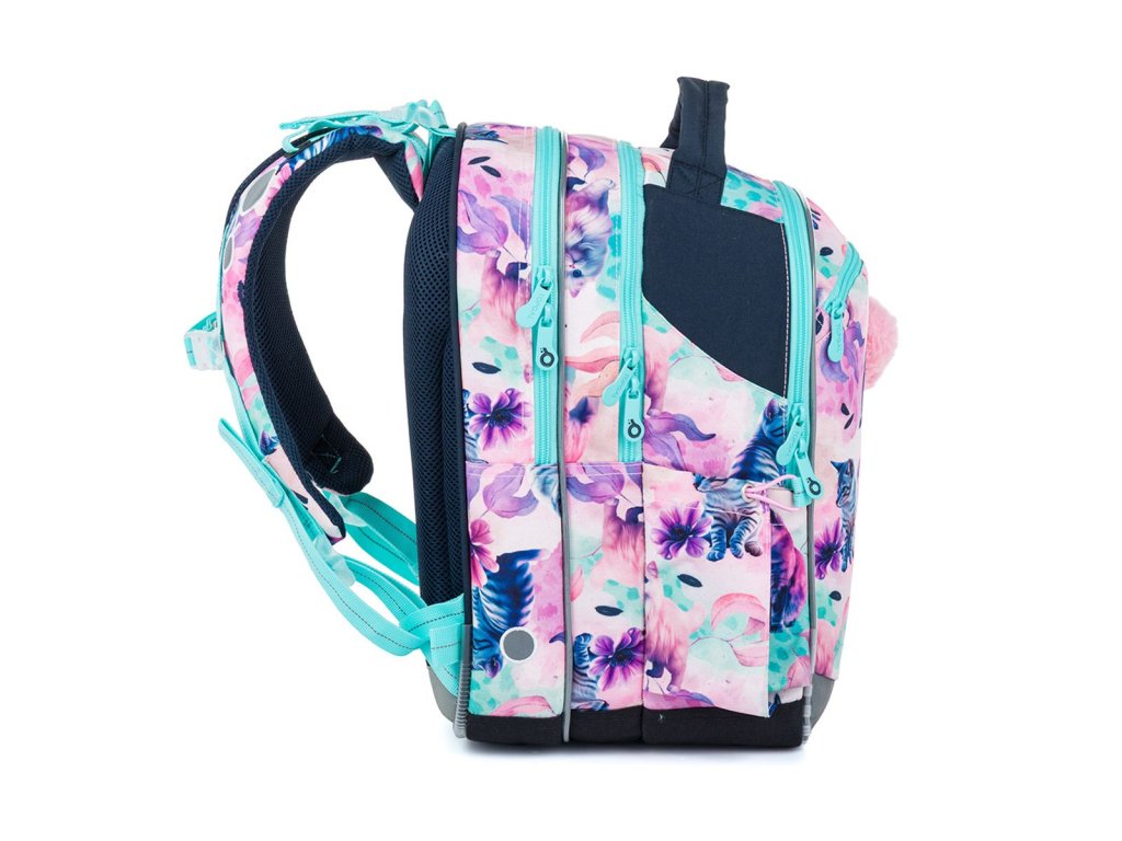 Třetí (přední) komora slouží např. na penál ve stejném designu nebo box na svačinu box na svačinu. Do bočních kapes se vejdou Zdravé lahve o objemu 0,5 litru.