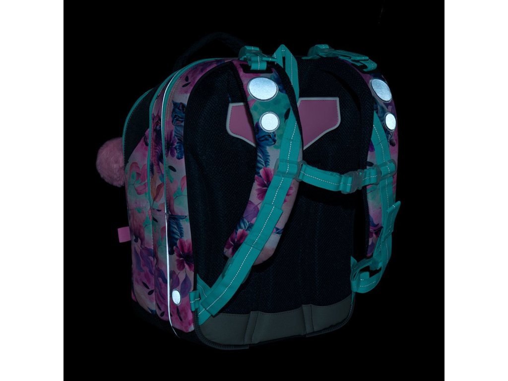 - reflexní prvky: na čele a bocích batohu, na ramenních popruzích