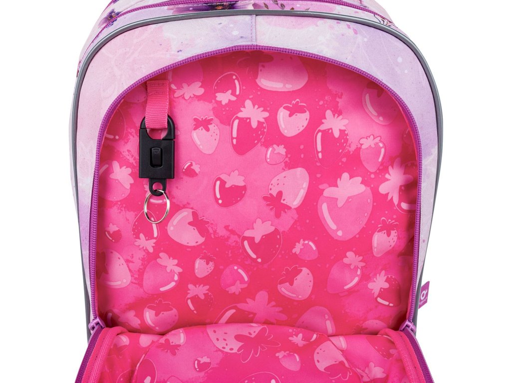 Batoh má dvě objemné hlavní komory. Do nejširší zadní komory doporučujeme dát nejtěžší učebnice nebo desky na sešity. Přední komora je o něco užší, a je v ní umístěna malá síťová kapsa na zip a jmenovka.