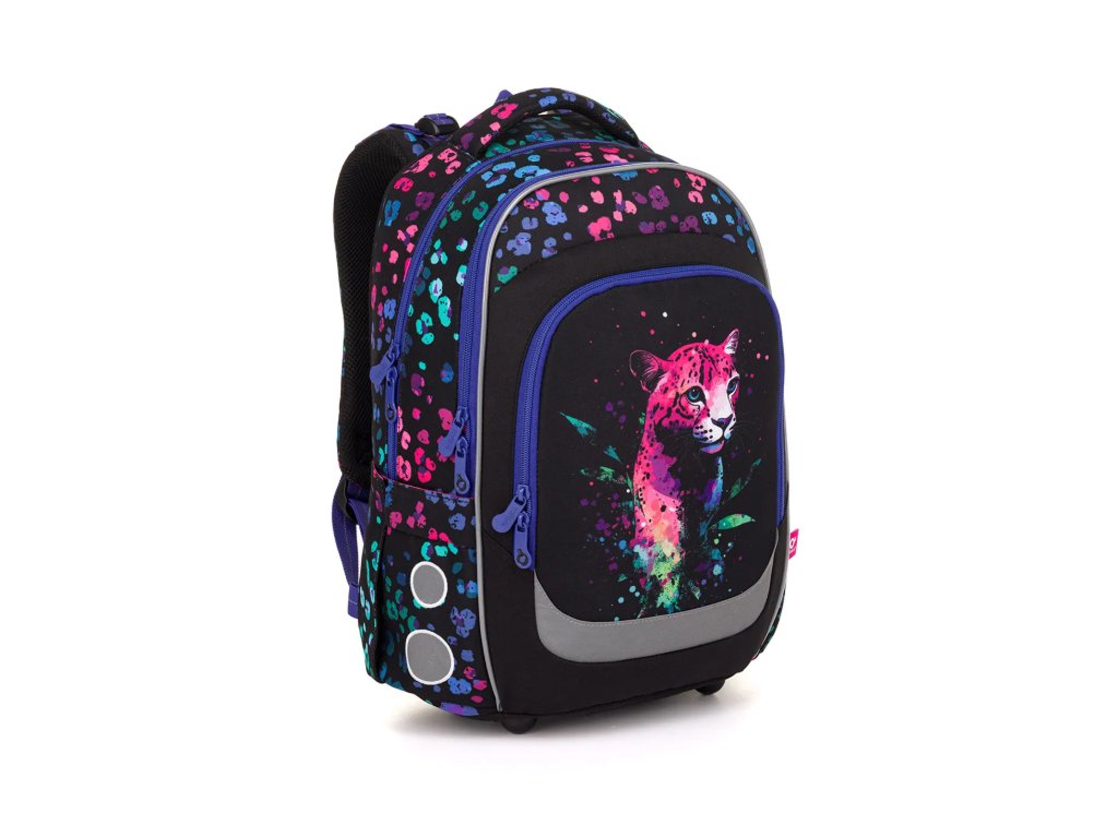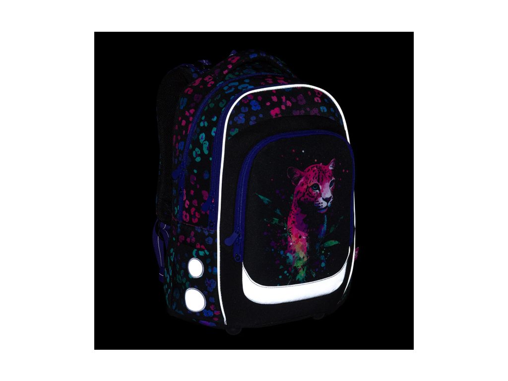 Tmavě modrý objemný model LORI je ideální volbou pro všechny slečny vyšší než 125 cm. Panter patří mezi nejoblíbenější motivy a tak tento krásný batoh zdobí hned několik těchto malých opeřených klenotů.
