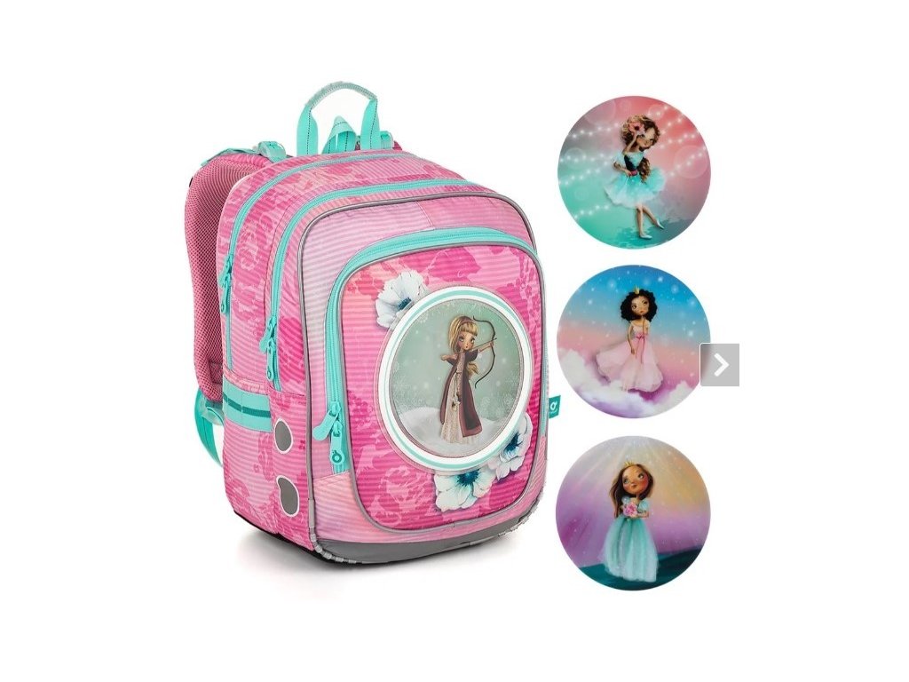 V průhledné přední kapse jsou 4 obrázky princezen na výměnu.