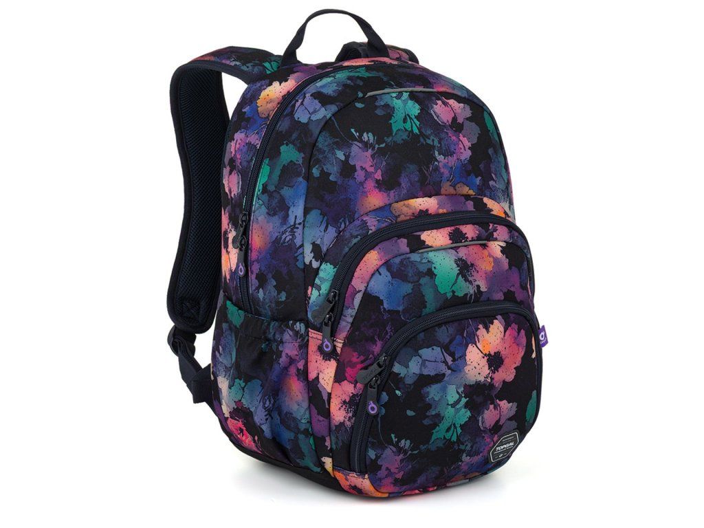 Jednokomorový studentský batoh s květinovým motivem