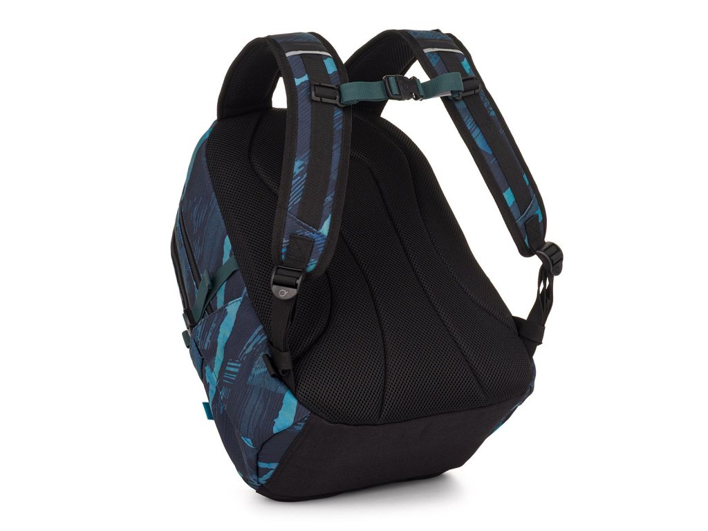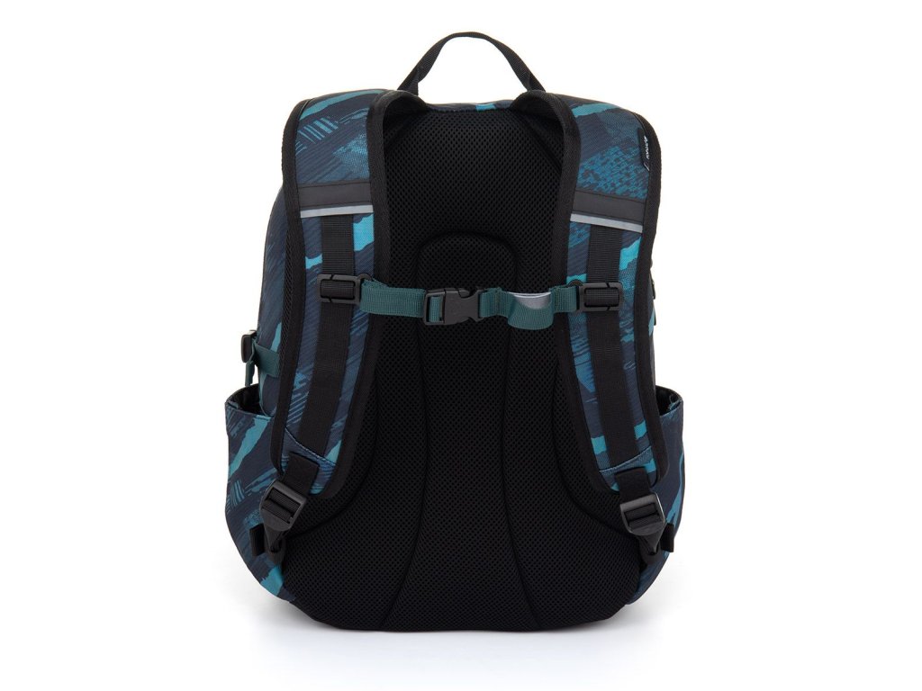 Oblíbený model ve tmavém provedení s potištěnými popruhy a decentní nášivkou. Vhodný pro druhý stupeň ZŠ a střední školu.
