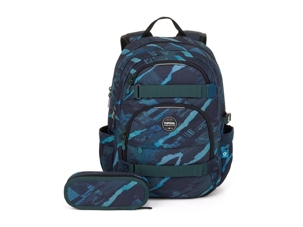 Moderní studentský set v černo-modré kombinaci se zpevněnými zády je určený pro kluky od výšky cca 145 cm. Set se skládá z batohu a penálu typu etue. Díky ergonomickému tvarování, měkce polstrovaným zádům a výškově nastavitelným ramenním popruhům se batoh pohodlně nosí i při každodenním zatížení
